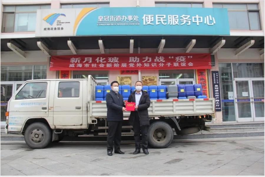 2月28日,威海新月化玻儀器有限公司總經(jīng)理李進(jìn)華為皇冠街道辦事處捐贈(zèng)了5噸消毒液,支援街道的疫情防控工作。區(qū)工委委員、管委會(huì)副主任、組織部部長(zhǎng)梁明同志為李總頒發(fā)了榮譽(yù)證書,市委統(tǒng)戰(zhàn)部班子成員、市工商聯(lián)副主席苗建臣同志,皇冠街道黨工委書記劉健同志,皇冠街道黨工委副書記、辦事處主任徐翔同志,皇冠街道辦事處人大聯(lián)絡(luò)辦公室主任初玉良同志,皇冠街道黨工委副書記劉玉凱同志參加了捐贈(zèng)儀式,對(duì)威海新月化玻儀器有限公司的捐贈(zèng)表示真誠(chéng)感謝!