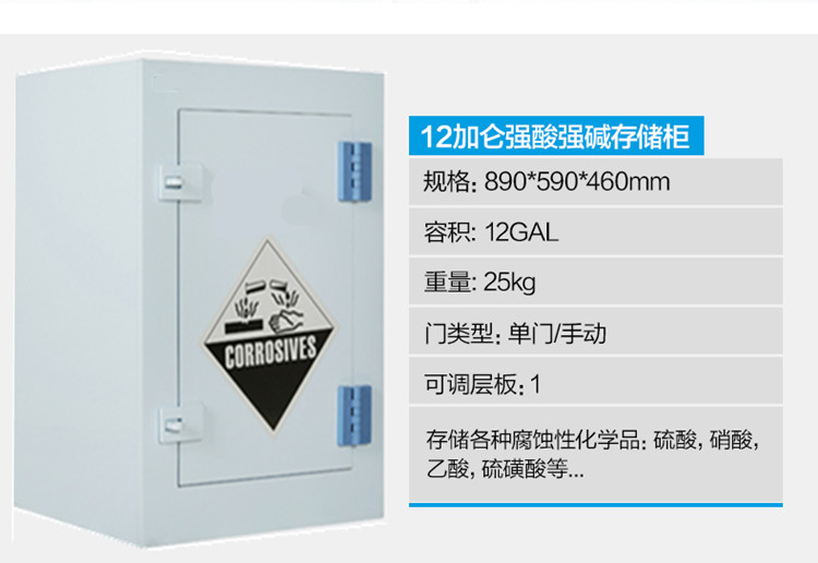 強(qiáng)酸堿儲(chǔ)存柜具有耐強(qiáng)酸、強(qiáng)堿與抗腐蝕。適用于實(shí)驗(yàn)室各類化學(xué)品及器皿的安全存儲(chǔ)。